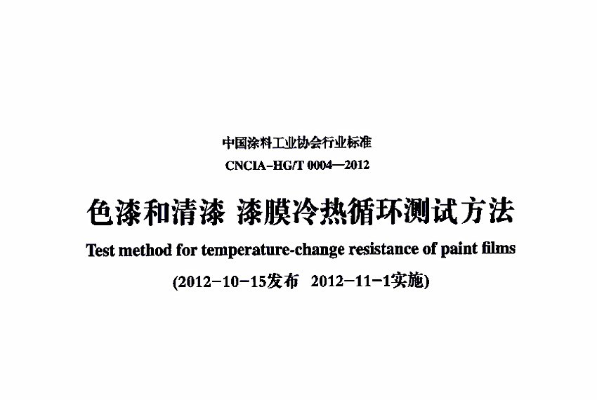 色漆和清漆漆膜冷熱循環(huán)測(cè)試方法標(biāo)準(zhǔn)CNCIA-HG/T 0004-2012