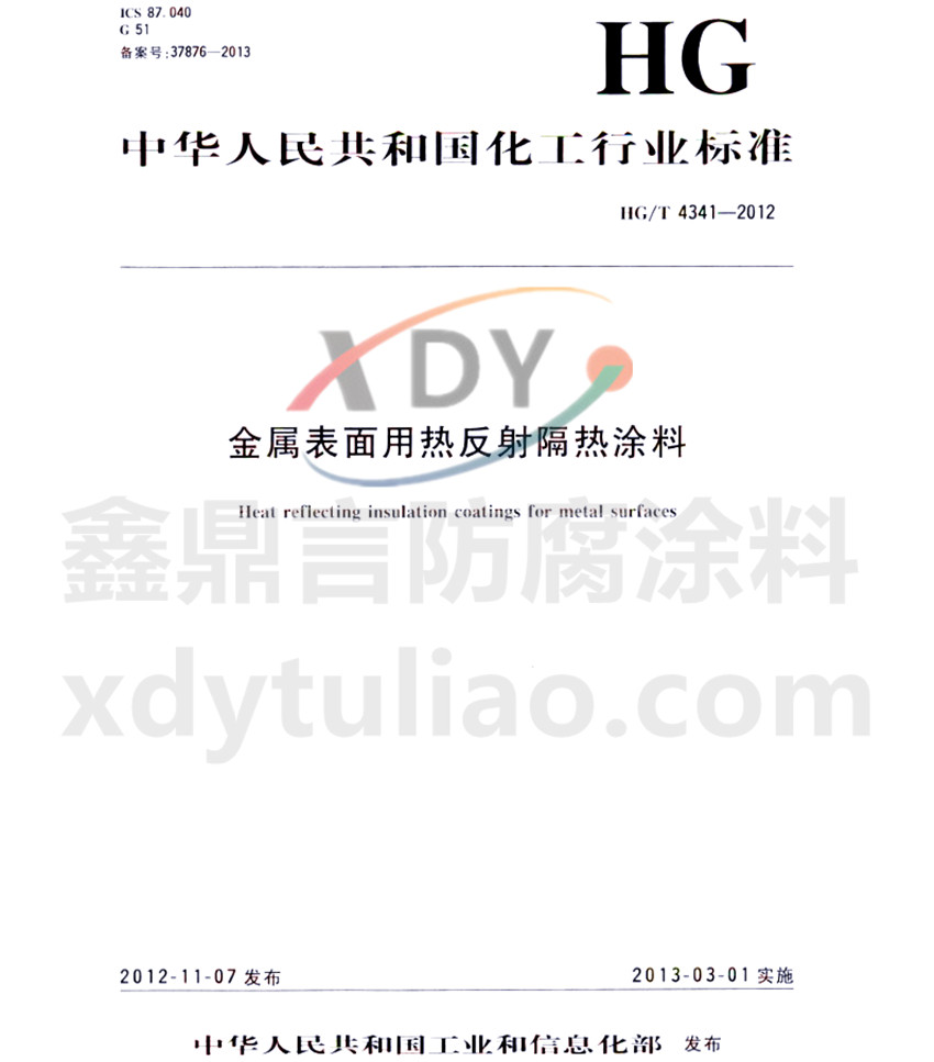 HG/T 4341-2012金屬表面用熱反射隔熱涂料標(biāo)準(zhǔn) ICS 87.040 G51 備案號:37876-2013 HG 中華人民共和國化工行業(yè)標(biāo)準(zhǔn) HG/T4341-2012 金屬表面用熱反射隔熱涂料heat reflection coatings for metal surfaces 2012-11-07發(fā)布 2013-03-01實施 中華人民共和國工業(yè)和信息化部發(fā)布 本標(biāo)準(zhǔn)規(guī)定了金屬表面用