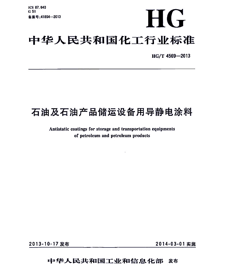 HG/T 4569-2013石油及石油產(chǎn)品儲運設(shè)備用導靜電涂料標準