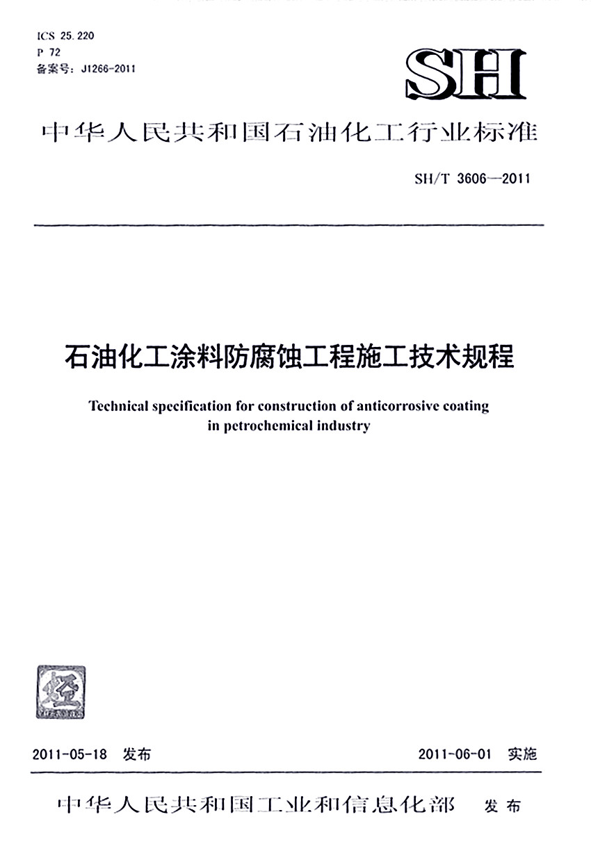石油化工涂料防腐蝕工程施工技術(shù)規(guī)程標準SH/T 3606-2011 ICS25.220 P72 備案號:J1266-2011 SH 中華人民共和國石油化工行業(yè)標準 SH/T 3606-2011石油化工涂料防腐蝕工程施工技術(shù)規(guī)程 Technical spccificatinon for construction of anticorrosive coating in pctrochcmical in