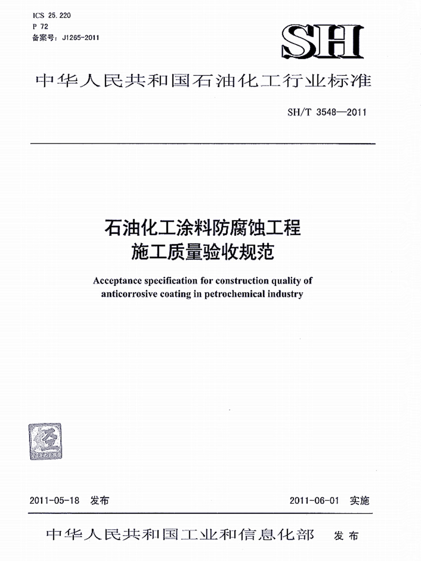 石油化工涂料防腐蝕工程施工質(zhì)量驗收規(guī)范標準SH/T 3548-2011