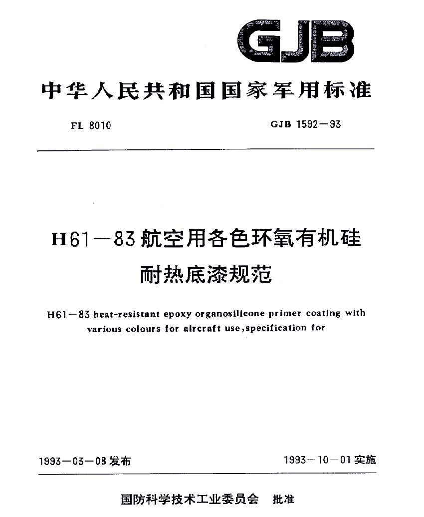 H61-83航空用各色環(huán)氧有機(jī)硅耐熱底漆規(guī)范標(biāo)準(zhǔn)GJB 1592-93