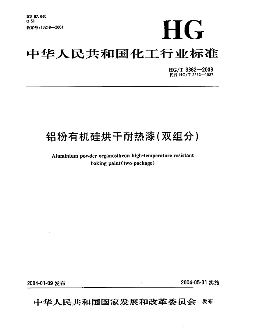 有機(jī)硅耐高溫漆標(biāo)準(zhǔn)HG/T 3362-2003代替 HG/T 3362-1987